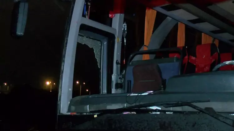 Savrulan otobüs, yol kenarındaki bariyerlere sürtüp durdu.